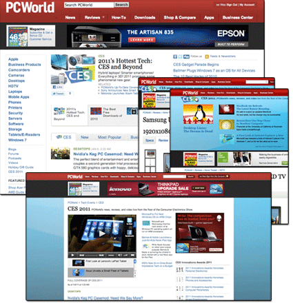 The program included an editorial dropdown unit (running on news and other pages during CES), prominent placement on the homepage, and a new tag-based index page that would dynamically consolidate all CES content.